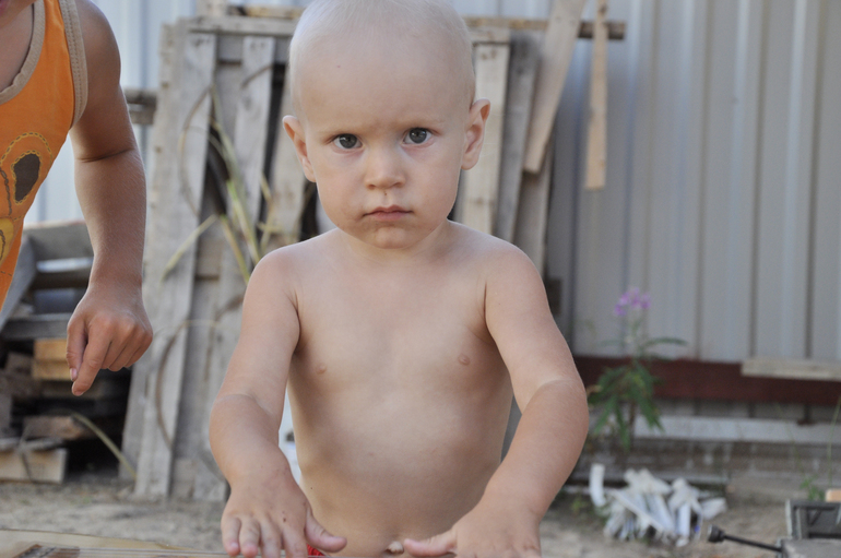 мне он всегда казался крепышом :) вот особенность фотографий- смотрю на них и просто рыдать хочется от того какой он нежный, маленький. Егор уже такой угловатый, худой и деловой ) вырос!