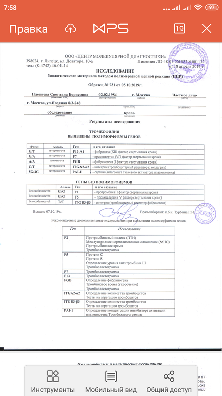 После первой ЗБ прошло 5лет,во время которых были 2лапароскопии и удаление эндометриоза,и вот долгожданные 2полоски....которые тоже по итогу закончились ЗБ на 6 неделях.После первой ЗБ мне даже и не предложили сдать анализ на тромбофилию,в этот раз я его сдала.Подскажите,кто с этим сталкивался... насколько все серьезно?Возможно у кого то такие же полиморфизмы.Посоветуйте хорошего генетика,гематолога в Москве,к кому бечь!!!!Мне нужна любая информация!!!Понимаю,что тема достаточно не новая и все же не проходите мимо,у кого есть хоть какая-то инфа.Я в этом полный 0