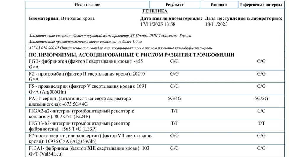 Риск развития тромбофилии