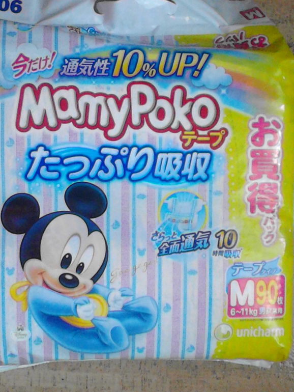 Подгузники Mamypoko сделаны тем же производителем, что и подгузники Moony, Unicharm (Юничарм) Япония. Выгодная цена, хорошо впитывают, дышащий материал, размеры большемерят, нет резинки на липучках, присутствует индикатор цвета, который меняется при наполнении подгузника. Цена ниже, чем Муни. Подгузники Mamypoko (Мамипоко) хорошо впитывает жидкость не более 10 часов.