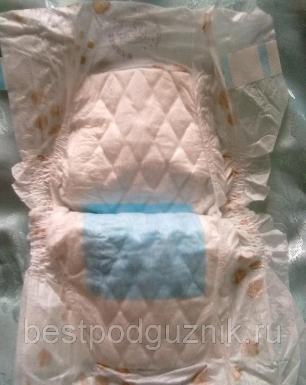 Ткань подгузника более шершавая по сравнению с Moony подгузниками, но впитывает до 2-х литров жидкости и не протекают, всю ночь выдерживают при обильном выделении жидкости. И размер подгузников чуть больше чем Муни.