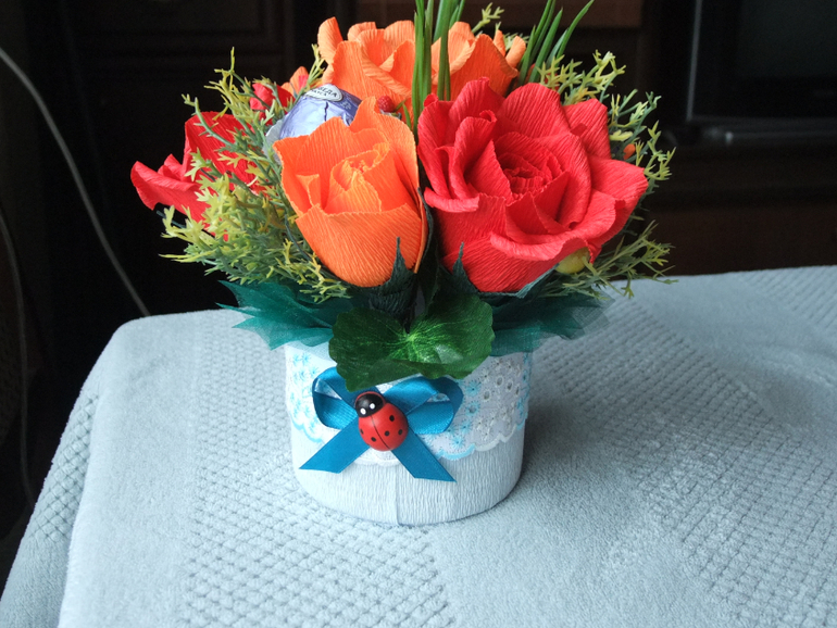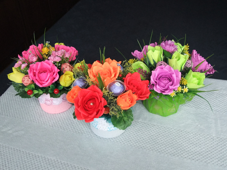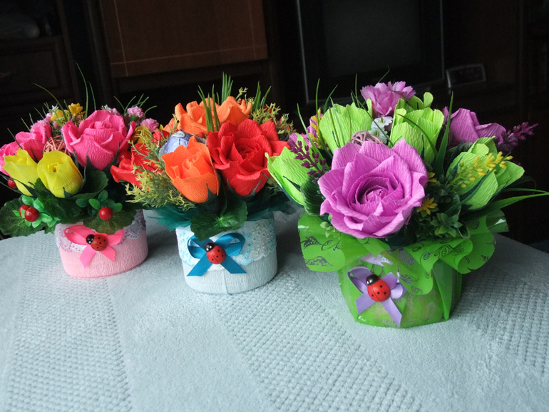 Букеты.Конечно, как и все рукодельницы, я тоже готовилась ко дню воспитателя. Решила сделать композиции в баночках. Осень, конечно, не очень люблю, слякоть, холода, но постаралась немного в букетики добавить красок осени. Прошу к просмотру, профессиональных фото пока делать не могу, но критику воспринимаю.