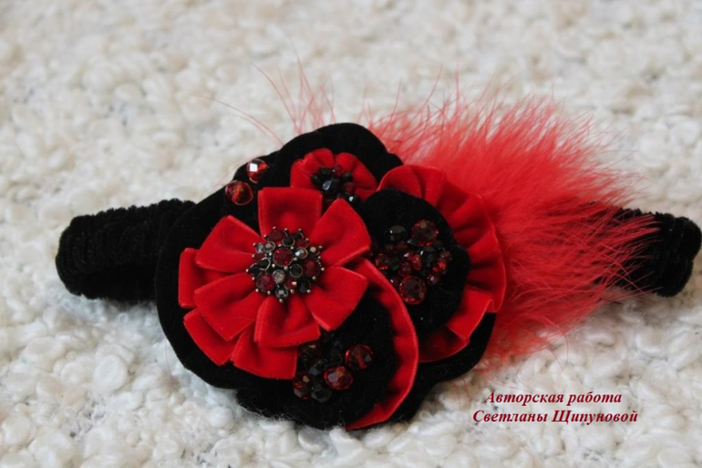 Теплая повязочка для красивой зимней фотосессии) Работа выполнена полностью из бархата, новый для меня опыт, но результатом я довольна) Теперь одна из моих любимых работ. Повязочка вся сверкает)