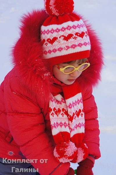 Ого у вас что уже снег?А шапка двойная? Комплект очень яркий и подходит к куртке!