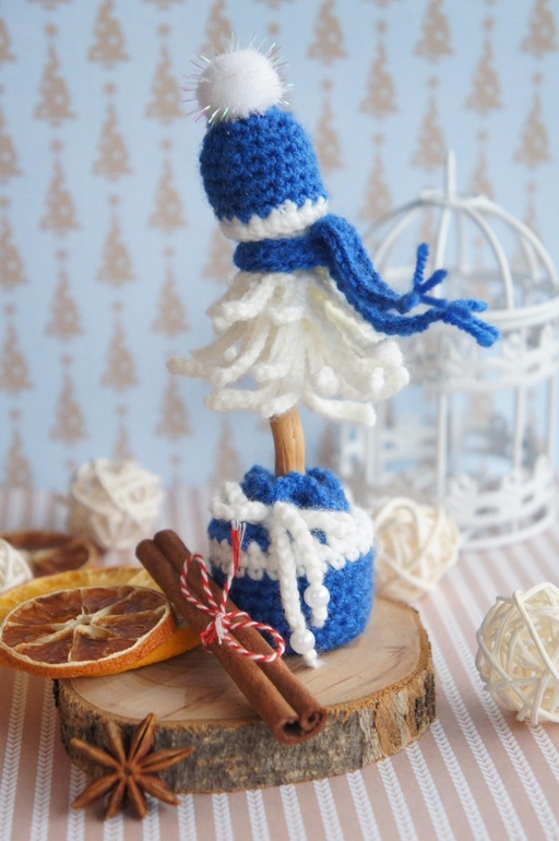 Уже не первый год вяжу такие ёлочки. Они служат дополнением к подаркам на новый год. Вот и в этом году "родилась" малышка.