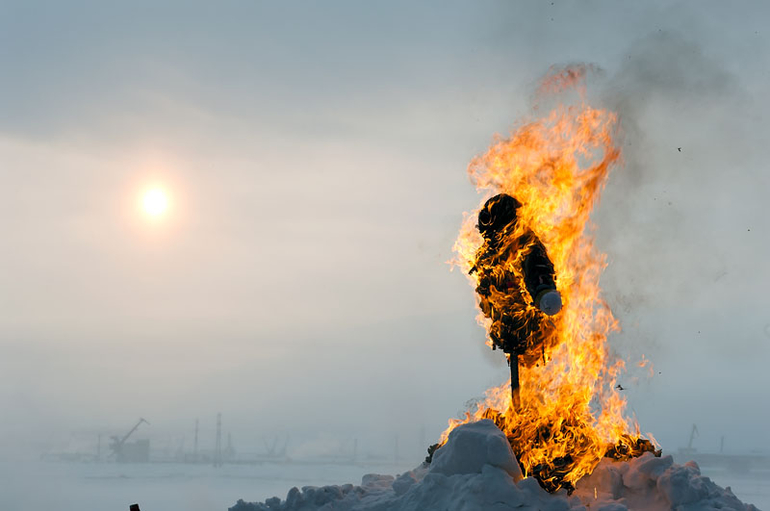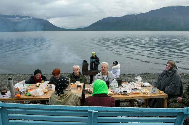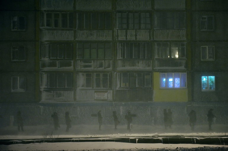 «И так у нас может быть и два, и три раза в неделю, - усмехается 50-летний металлург Василий на остановке. - Такая пурга не редкость. Вот и жду колонну с пяти вечера, как смена закончилась». На электронных часах мигает 00:10. «Бывает, не успеешь на автобус, пурга утихнет, и идешь пешком до города, - продолжает он. - К утру как раз добираешься. Ну, а если смена с утра, так и ночуешь на заводе. Иной раз и колонна пройти не может. Всех высаживают на «Надежде», греют в столовых, чаем поят»".(выдержка из текста Е. Чернышовой)