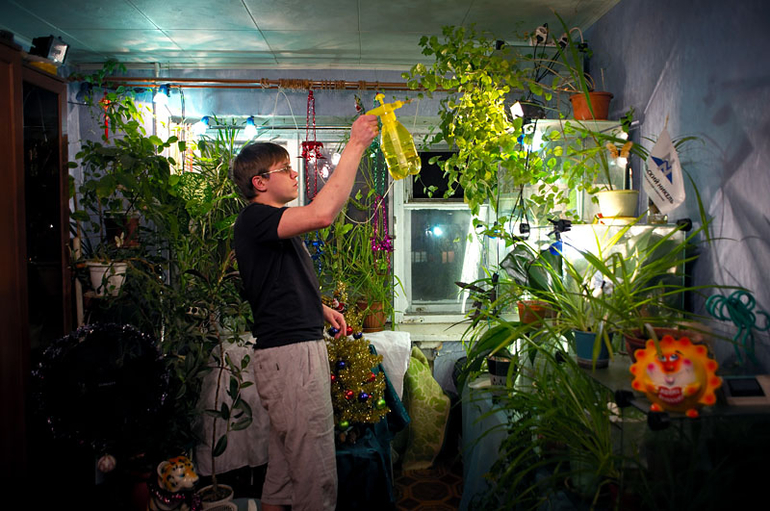 Цветам и рыбкам вешали дополнительное освещение в комнате, в прочих условиях им было не выжитъ.