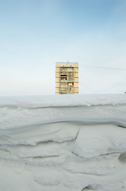 На фотографии ниже изображено расстояние между домами. Улицы освещены звёздами, Северным сиянием, искуственным освещением дорог и светом из окон. Ах, эти окна... бывало ляжешь на сугроб, а он до третьего этажа высотой был, и рассматриваешь. На фоне чернильного неба вырисовываются узоры из "зажжённых" окон, морозный воздух вычерчивает их с особой резкостью, так, что видно их до следующего микрорайона.