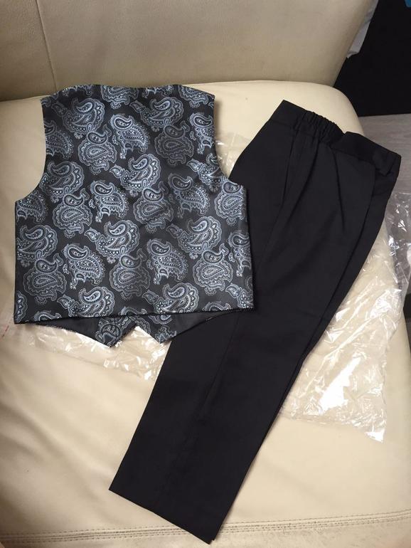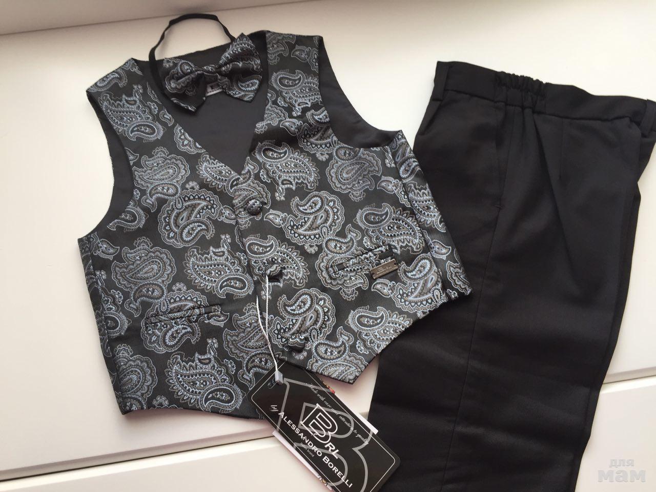 Выгодные покупкиНа утренники в садик или семейное торжество. Марка большемерит на мой взгляд. Замеры сделаю если нужно. В комплекте 3 вещи- брюки,жилет,бабочка.