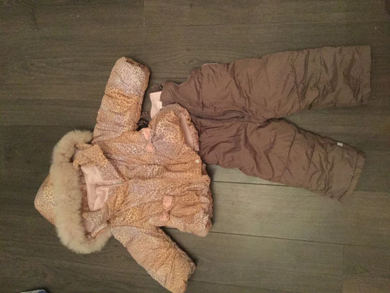 Комплект для зимы на девочку, теплый, размер 80(+), из недостатков сломан язычок на бегунке у штанов, замок работает исправно. Цена3000