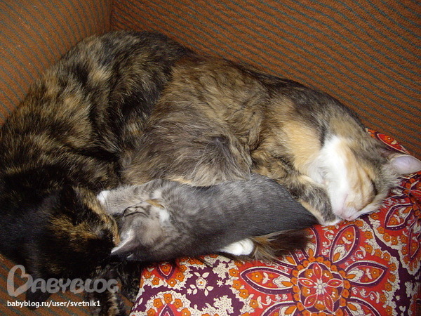 У меня тоже кошки подобрашки. Одной уже нет в живых. 10 лет было. А подобрала ее в палатке-магазине недельным котенком. Их мать толи бросила, толи ее собаки разорвали. Я ее из соски выкармливала. А вторую тоже в метро подцепили с мужем-))