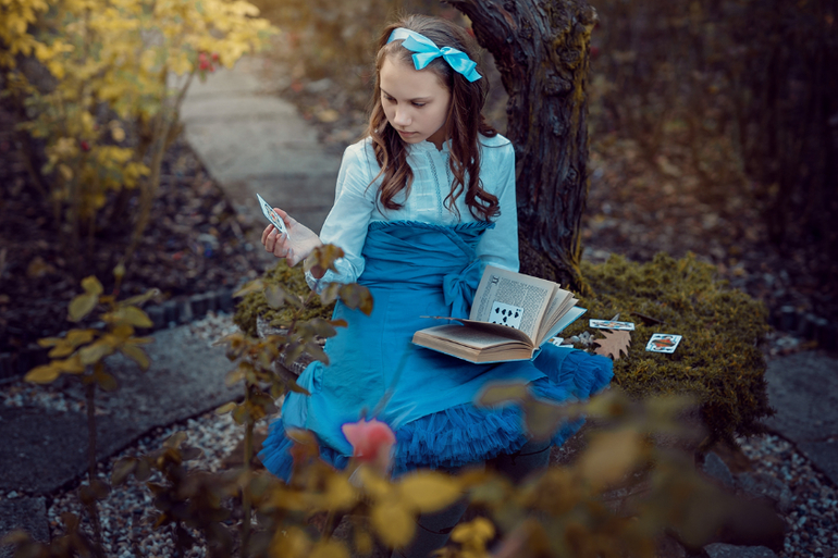 За два дня до родов получилось сделать для старшей дочери небольшую фотосессию в образе Алисы. Им в школе объявили конкурс где нужно сфотографироваться в образе любимого персонажа и описать на английском чем этот персонаж нравится... А для меня это повод был опробовать новый объектив 85/ f-1,4... В общем, сказка это круто, особенно когда ее создаешь своими руками)))...