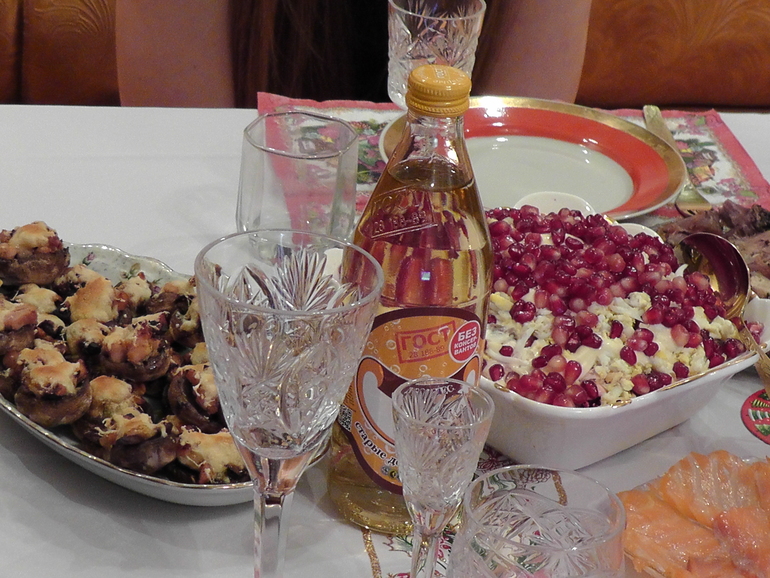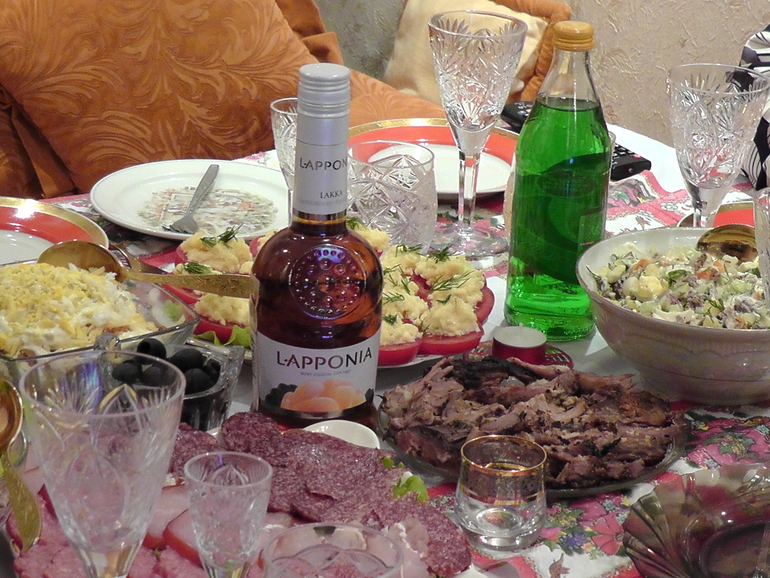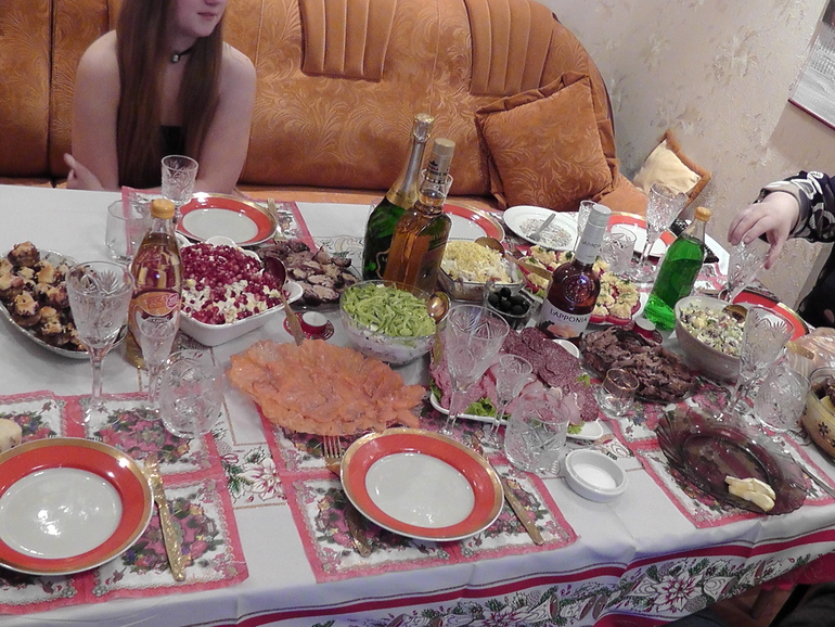 оливье (куда же без него))) когда заикнулась о том, чтобы его не делать, меня чуть помидорами не закидали....