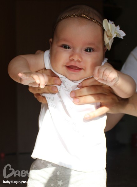 А сестренка растет) Сейчас, в 4 месяца, 66 см и 6800 г. Болтает тоже, гулит, внимание обажает.Одно меня печалит - не переворачивается до сих пор((( Только на бочок. У кого-нибудь есть еще такие детки большие, которые не вертятся?