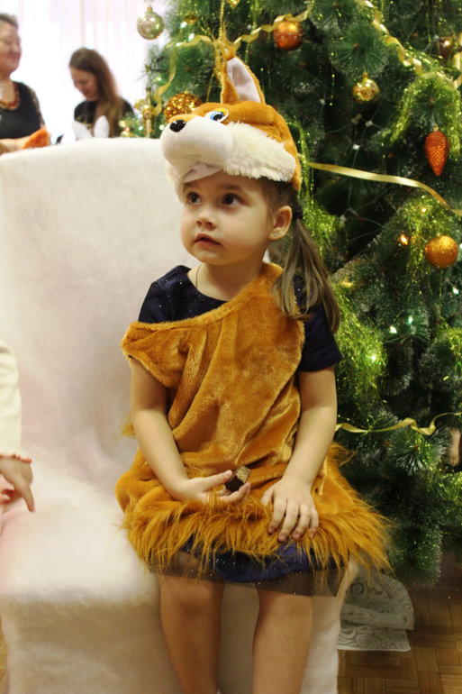 Вчера был утренник. Наша Белочка. Танцевала отлично, стишок рассказывала. Но сначала что-то забоялась, хорошо, что к своему выступлению развеселилась. Платье показать не дали - весь утренник в беличьем костюме была. Туфли вообще одеть не разрешили - по технике безопасности надо в чешках. Прическа была красивая - Нянечка заплела - и та была под беличьей шапкой)