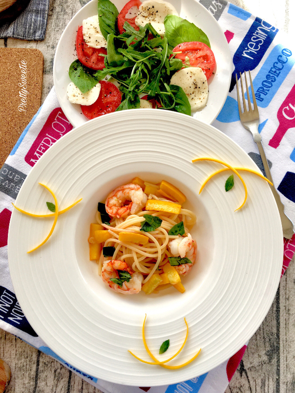 Мой вариант быстрого и сытного ужина. На все про все минут 15, получается красивый, вкусный и сытный ужин, который , наверняка, придётся по вкусу многим, особенно любителям пасты) креветки здесь вообще опционально, впрочем, они прекрасно заменяются на порезанную, некрупными кусочками, куриную грудку. Очень просто и вкусно, я хоть и любитель замороченных рецептов, но этот подкупил простотой ингредиентов и временем приготовления.