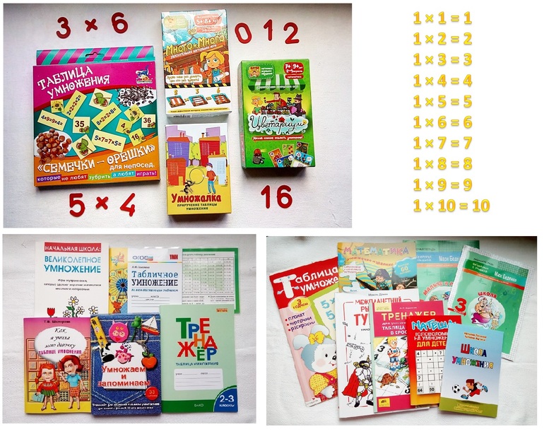 Сын-второклассник обожает таблицу умножения. Ждал с нетерпением, когда же они начнут ее изучать в школе. А т.к. в школе долго запрягают начинают ее учить во втором полугодии второго класса, то мы к этому времени уже успели поиграть в несколько игр на тему умножения, а также порешать некоторые пособия. Наша подборка на фото. Часть пособий решена, а часть останется на лето, чтобы не подзабыл таблицу.