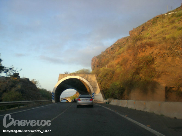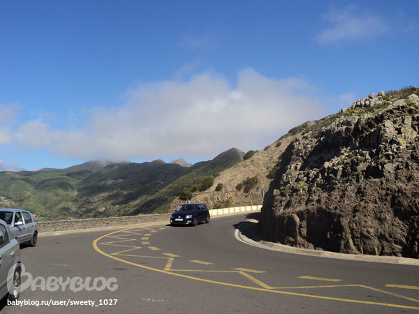 Дороги там замечательные, даже высоко в горах покрытие выше всех похвал. Каждая трасса имеет свой номер типа TF-1 для главной трассы, идущей по берегу с юга на восток. Эта дорога похожа на наш МКАД, если вдоль него посадить пальмы :) Только пробок нет. Его я не фотографировала. МКАД он и есть МКАД. Дороги, идущие вглубь острова к вулкану и по западному берегу, более живописны и выглядят как правило вот так:
