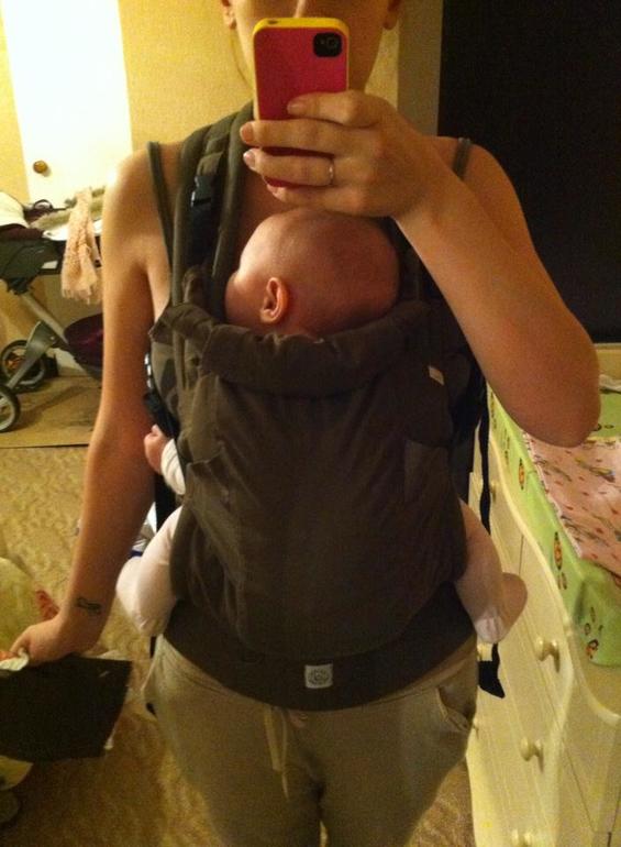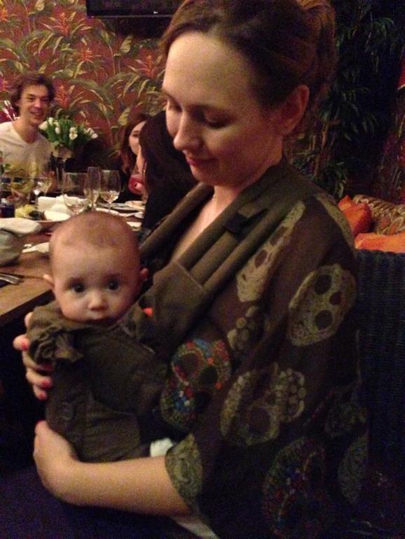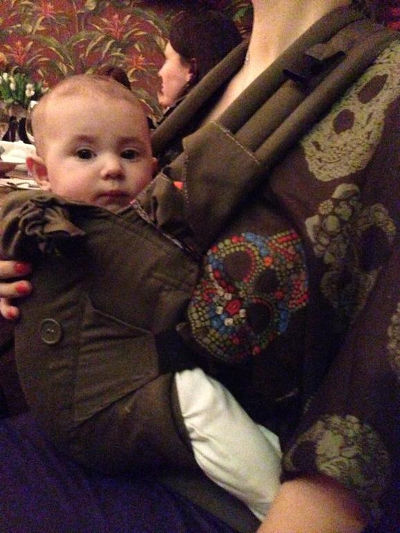Вот фотография вчерашнего вечера. Мы ходили на день рождения знакомой. Дочка в рюкзачке спала, ела и просто сидела. Извините за качество фотографий, освещение не очень.