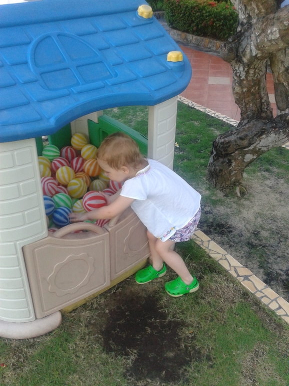 На территории отеля есть площадка мини для детей: горка, качели и домик с мячиками..