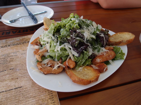 Перерыв на обед ) Катя в этом году везде заказывала салат «Цезарь». Это практически самое дорогое блюдо в меню, 10 лари (200 руб.).