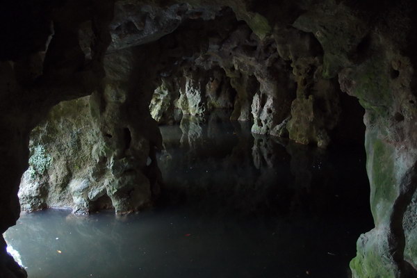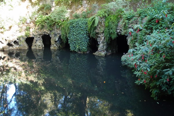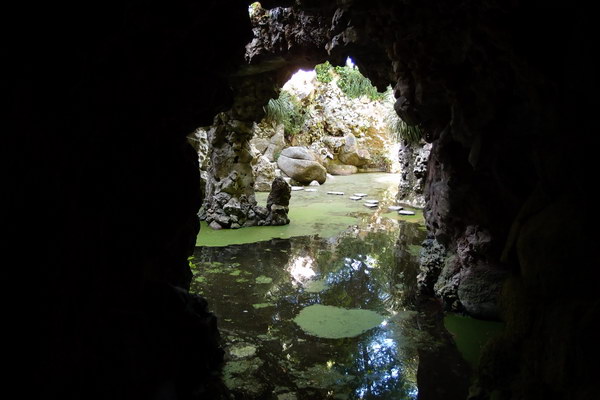В пруду положены плоские камушки, ведущие к входу в грот, если знаешь с какой ноги начинать путь по камням - попадешь в грот.