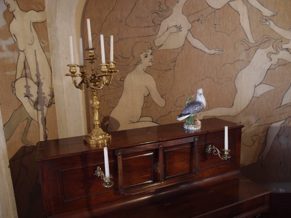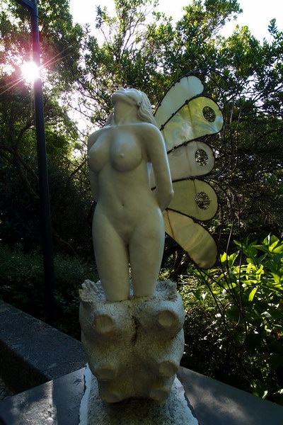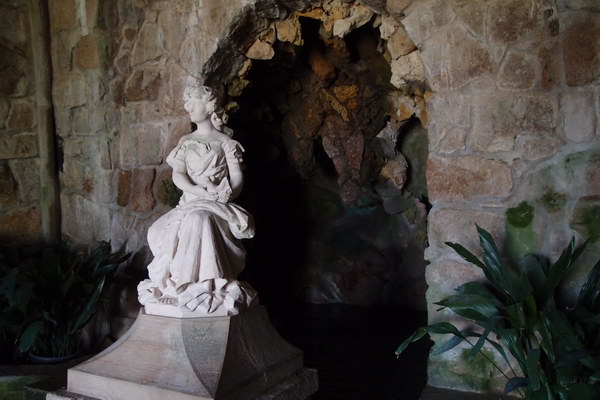 Скульптура Леды. Это женщина, которая снесла яйца от Зевса. Леда восседает в одном из гротов, а лебедь возле её ног, это Зевс, который пощипывает её за ногу. Скульптура символизирует непорочное зачатие в древнегреческой мифологии.