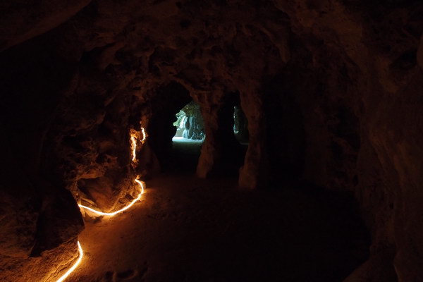 Нигде ничего не огорожено, народу никого, куда идти непонятно, а подсвечена одна основная тропка по подземелью. А так куда хочешь - туда и иди, хоть с фонариком, хоть без, как вам нравится!