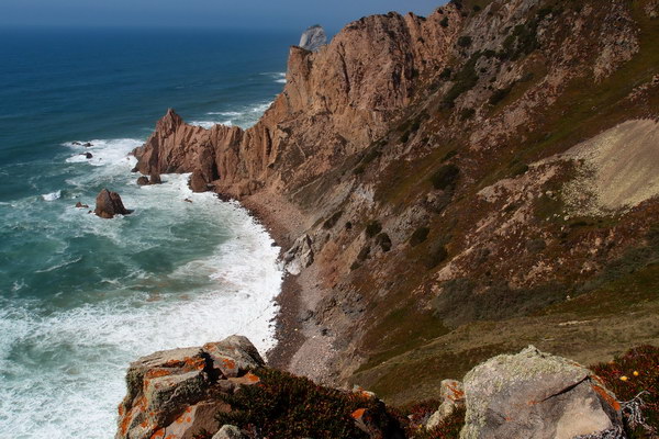 Около маяка тропочка, мы по ней и ушли в следующую бухту, где туристов вообще не было. На самом Кабо да Рока довольно многолюдно, и да, холодно так, что пуховик не помешает! В один и тот же день у нас был и зной пляжного отдыха, и ледяной холод океана.