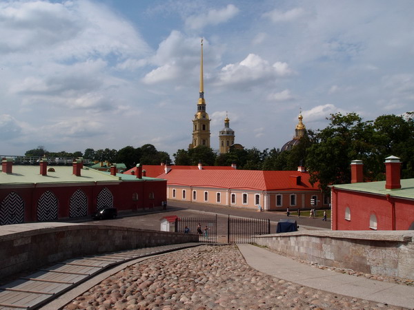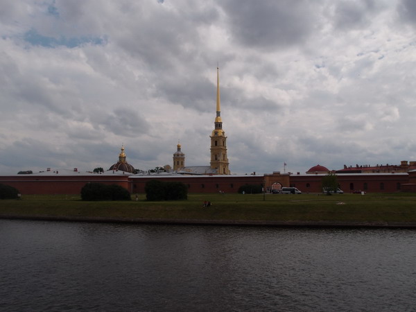 Петропавловский собор. Строительство его было начато по указу Петра I в 1703 году в день святых Петра и Павла. Он огромный, это просто вид сбоку.