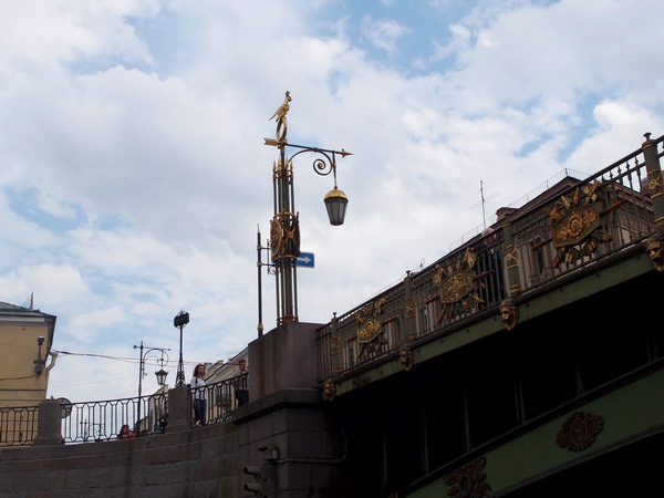 Когда-то мосты были деревянными и похожими друг на друга. Чтобы не путать их, было принято решение покрасить их в разные цвета, поэтому на Мойке есть зеленый, синий и красные мосты.