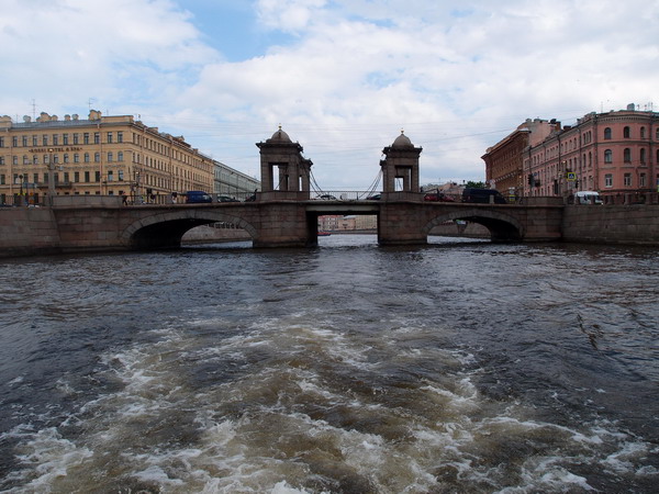 Потом ныряем в арку моста и плывем по Фонтанке