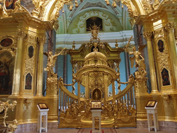 Внутри собора усыпальница всех русских царей и императоров начиная с Петра I.