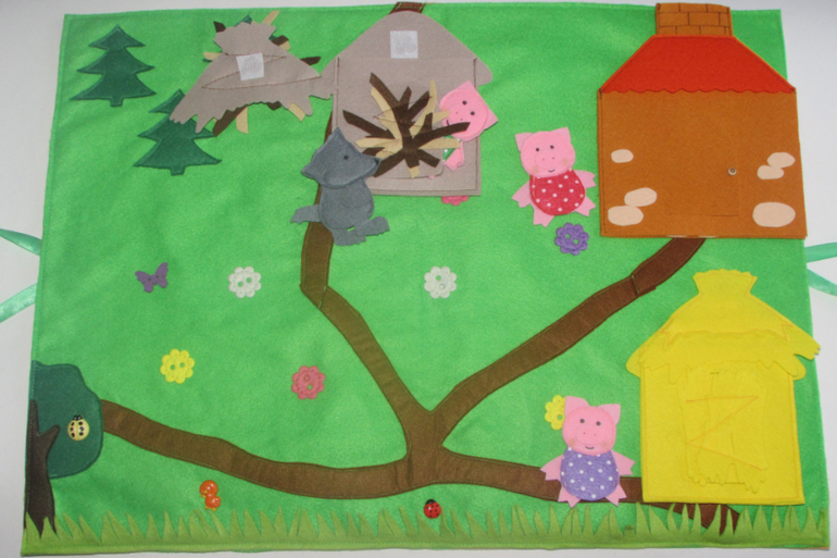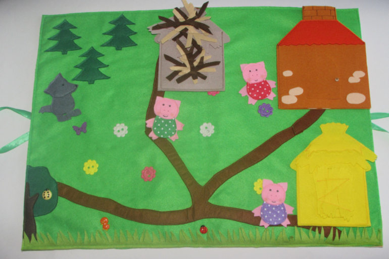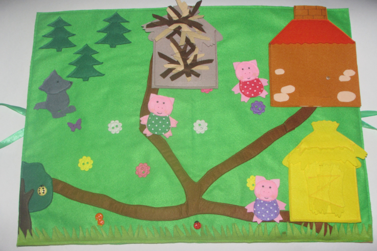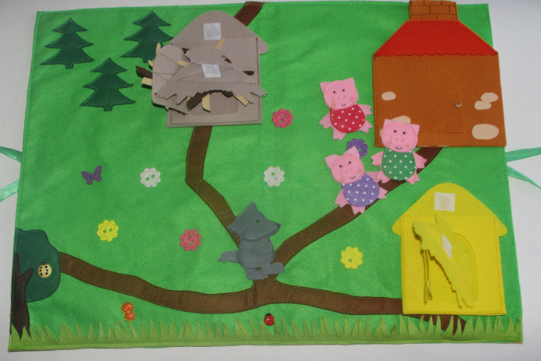 Всем здравствуйте! Поздравляю все с прошедшим Новым годом и Рождеством! Праздники для меня прошли за моим любимым занятием,рукоделием! Хочу показать вам две сказки .Это "Колобок" и " 3 поросенка".Для каждой сказки сшито игровое поле с кармашком для героев!