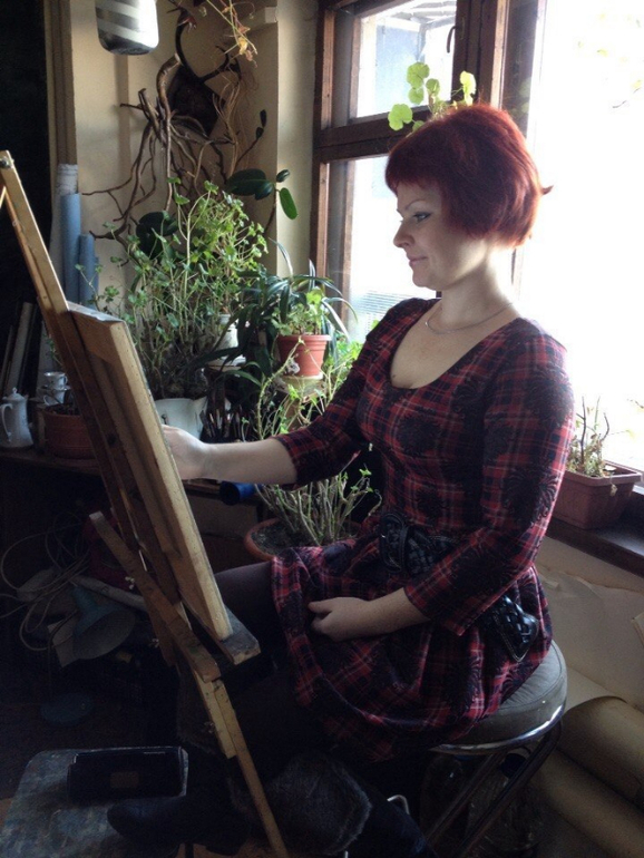 Мастерская посередине дома. Слева: церковный приход. справа - пивнушка. Шикарнейшая картина: слева поют алилуйя, со свечками ходят по улице и со всякими там флагами-иконами, ровно до мастерской и разворачиваются в обратку. Справа: баян, пиво, пьяное: нузахриста и песни лалалэйтралаэй... и гульки тоже ровно до середины мастерской.
