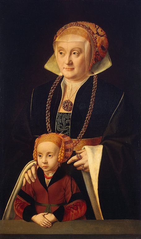 А поглядев полную версию картины, выясняется, что там еще изображена собственная моя свекровь. Молодая, похудее и с немного удивленными глазами. А картина та называется "Портрет дамы с дочерью" и висит она в Эрмитаже.