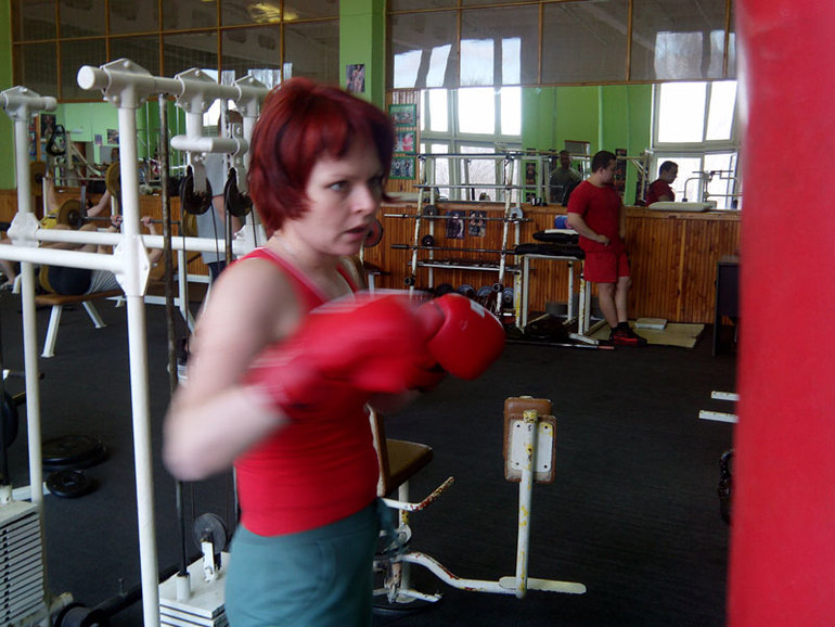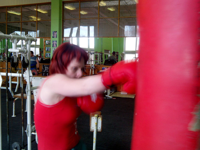 Мой девиз в последнее время: "Сдерживаться это плохо. Лучше бить вещи, чем людей. Гумманизм спасёт человечество". Совсем недавно обнаружила прекрасный метод расслабления себя и мозгов. После получаса пинания и битья твердых и тяжелых предметов, выхожу из зала счастливая, любящая всех и расслабленная до мизинцев на ногах. Свидетель происходящего и автор фото: Акка Кебнекайсе