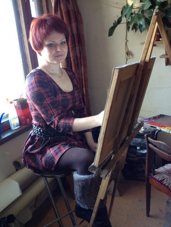 А еще мне сделали феерический портрет. В стиле современного искусства. Да-да. Завидуйте молча. Это я иду на бал. Нарядная. В туфлях, с сисями и в трусах под платьем.