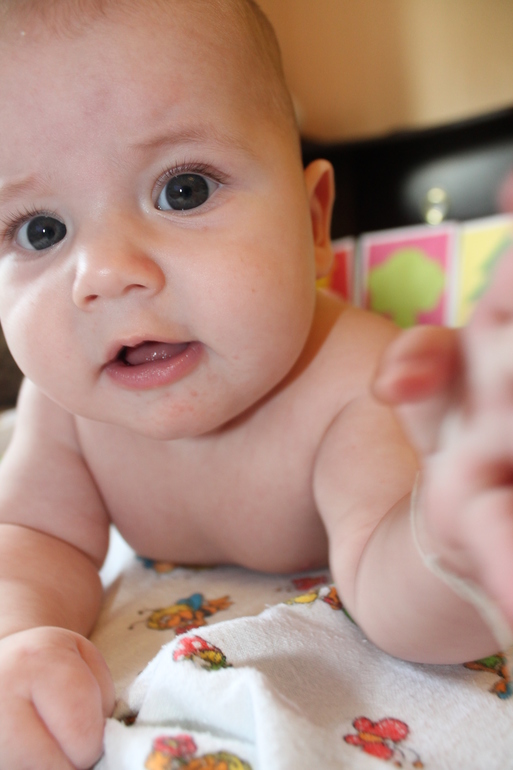 Сегодня наконец-то засмеялся, я бы даже сказала захохотал. А то все улыбался только. И визгун еще тот: и пищит, и визжит когда с ним играешь.