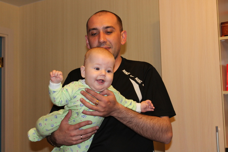 Наш вес 8150 гр (+570 за месяц; +5570 с рождения), рост 64 см (+2 за месяц; +16 с рождения).