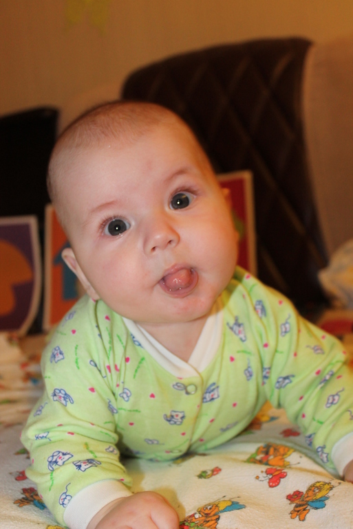 Еще на этой неделе поменяли смесь, перешли с НАН 1, на Малютку 2. В планах на этот месяц ввести побольше овощей.