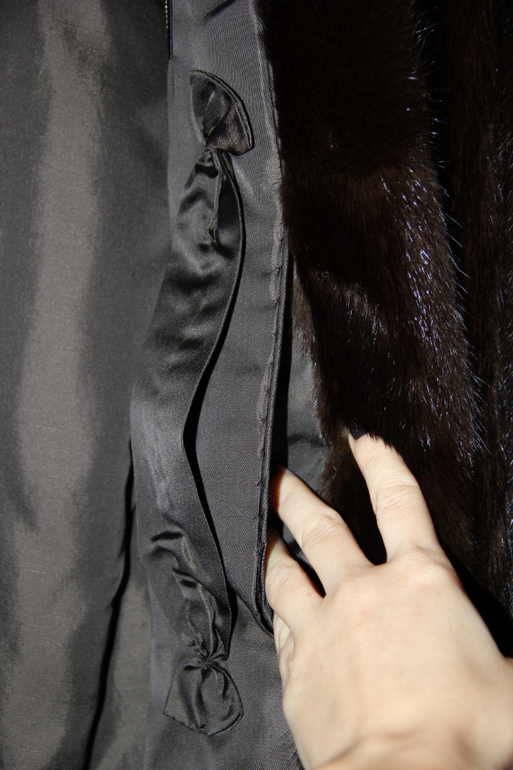 неизбитая модель - рукав с манжетом, воротник шаль, края закруглены, внутри есть карман, 2 крючка, есть внешние карманы, внутри как бархатные, рукам приятно)