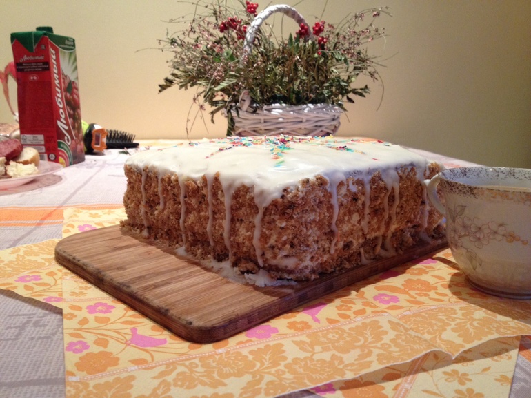 2. Медовичок, крем шарлот (3 ст молока,з ч л крахмала, 3 ч л.муки, проварить до густоты; взбить с 2 ст сахара и 200гр масла) . Вкусно! 9 коржей.