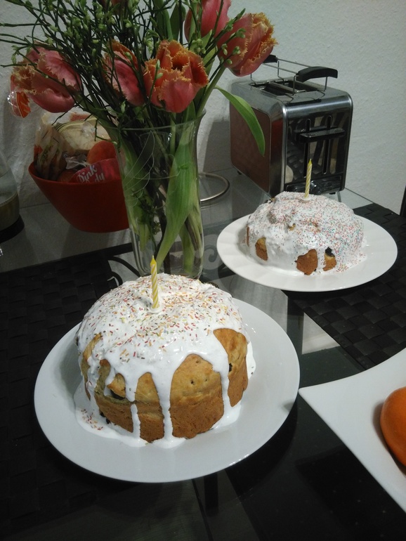Вчера попробовала сама испечь пасхальный кулич. Первый получился маленький и страшный, второй, вроде более менее похож на кулич. Очень вкусный. Не сухой, как в магазине. Муж слопал уже один 😂
