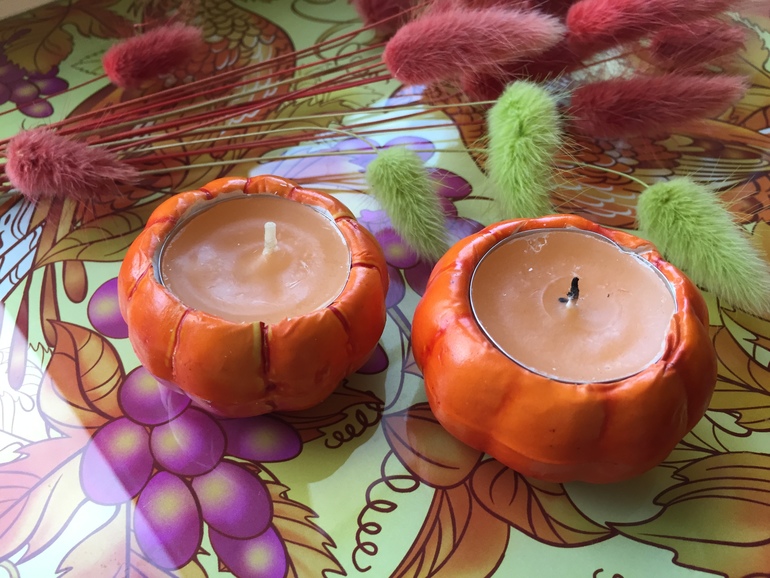 Сегодня пришла в голову очень простая в воплощении идея- подсвечники-тыковки!
