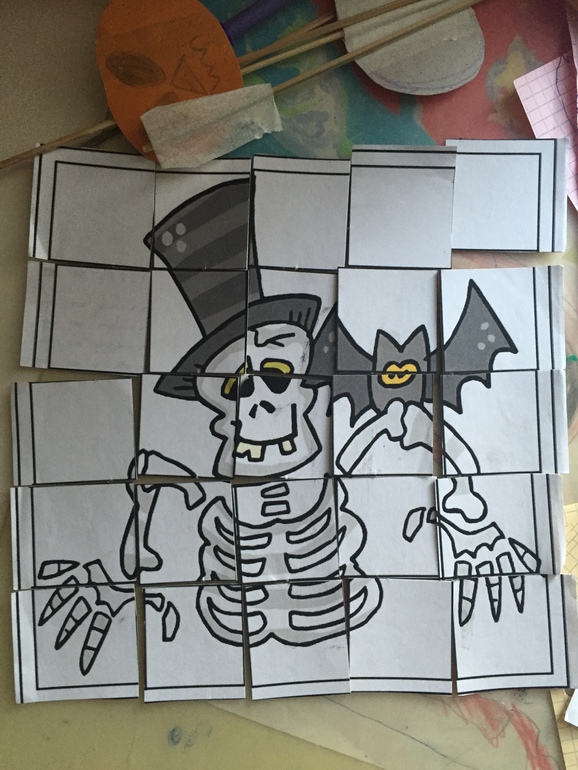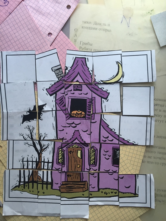 Чтобы узнать, где спрятан подарок, детки собирали паззлы (к счастью,они тоже были распечатаны еще в прошлом году)