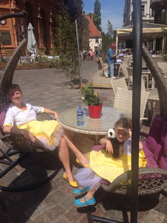 Уехали к морю в Латвию. Погода была не очень почти все 2 недели отпуска, дачный поселок маленький, наряжались в основном в резиновые сапоги. А сегодня солнечно, что не свойственно для Лиго (нац.праздник), все отсыпаются после бессонной ночи и мы рванули в Старую Ригу прямо с дачи. Сейчас фото смотрю и думаю, что подъюбник дочке то велик нещадно, а с дачи выезжали было незаметно, а снять его потом она не дала))