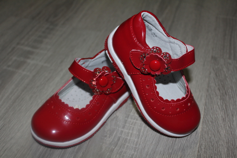 Красные туфли Домик новые 14,5см 22р цветок в стразах сбоку 750р