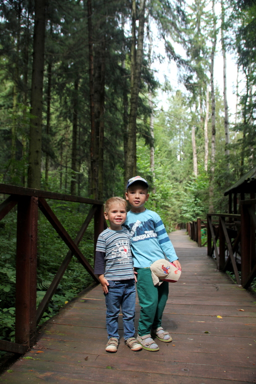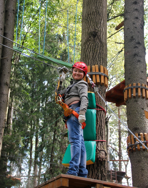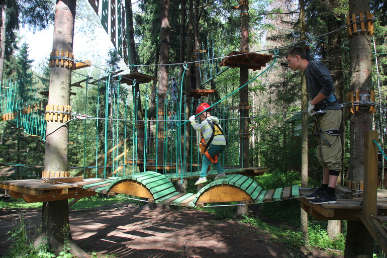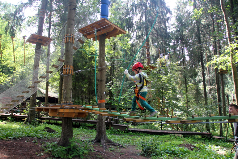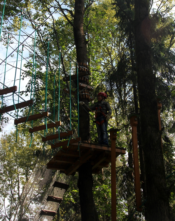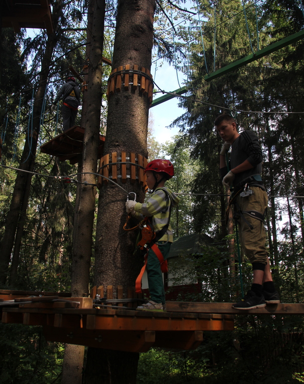 Сережа постарше, ему почти 11 лет, и ему выбрали трассу "Маугли". Пару раз я думала что он не пройдет, сложно было и страшно - трасса была на высоте наверно 5 метров, но мы его всячески поддерживали и он справился и прошел до конца!