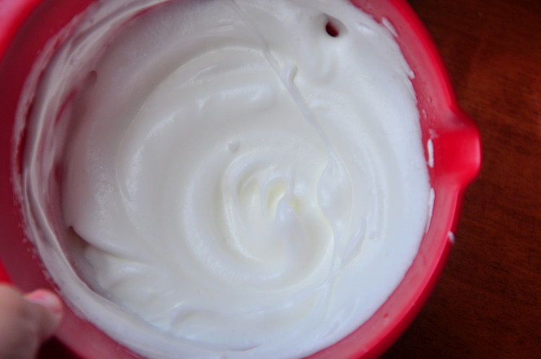 Белки достаточно взбиты, когда пики не опадают, а белки не "убегают" из миски при ее переворачивании вверх дном.